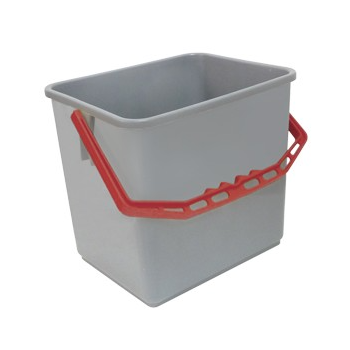 SQUARE BUCKET 6 LITRES GREY PLASTIC HANDLE RED